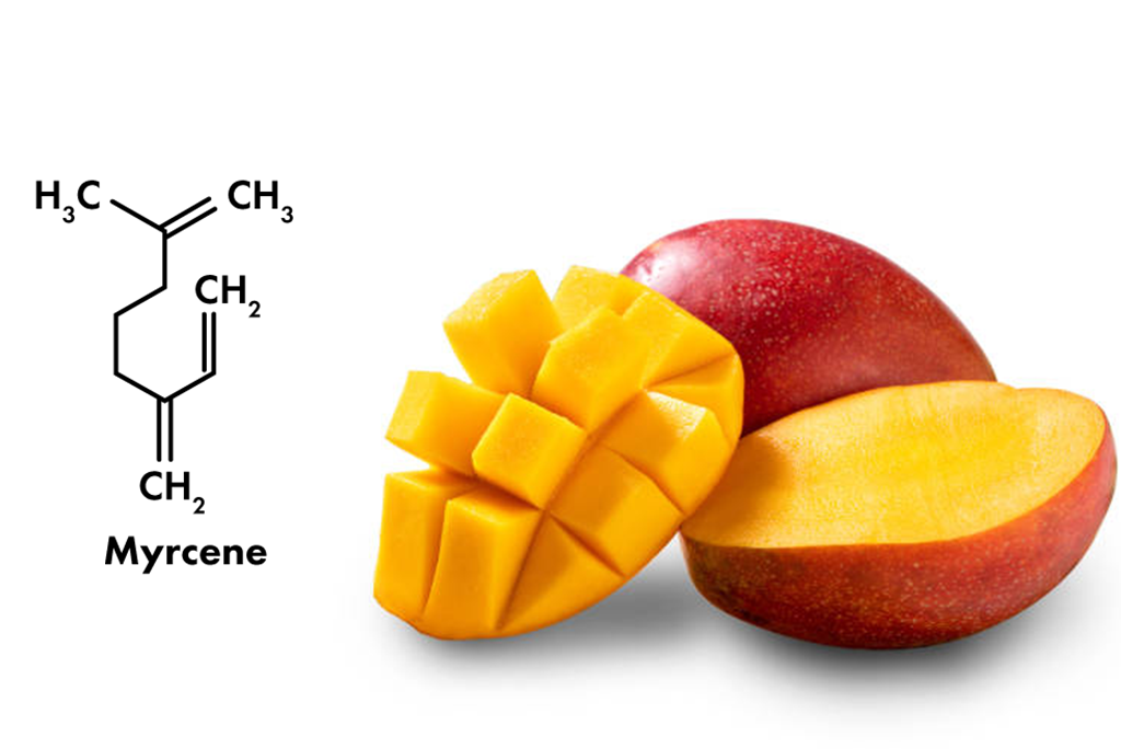 El mirceno es un potente analgésico, antiinflamatorio y antibiótico. Posee también un efecto relajante, tranquilizante, antiespasmódico y sedativo. Actuando en sinergia con el THC, el mirceno aumenta su potencial psicoactivo.